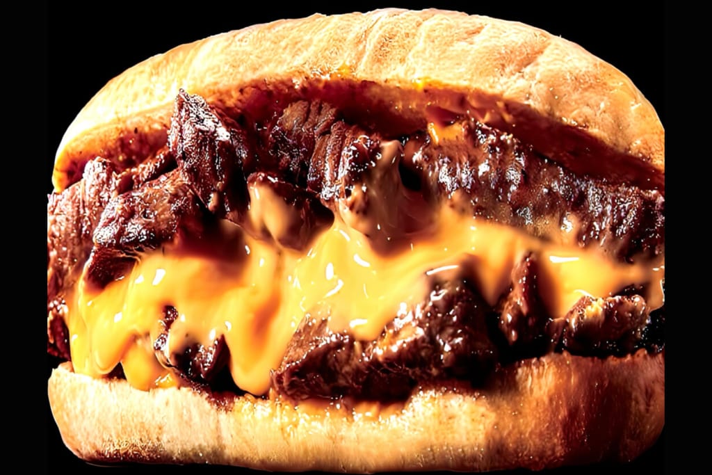 アメリカ・アンガス牛を使用したステーキチーズサンド。ステーキを食べやすく