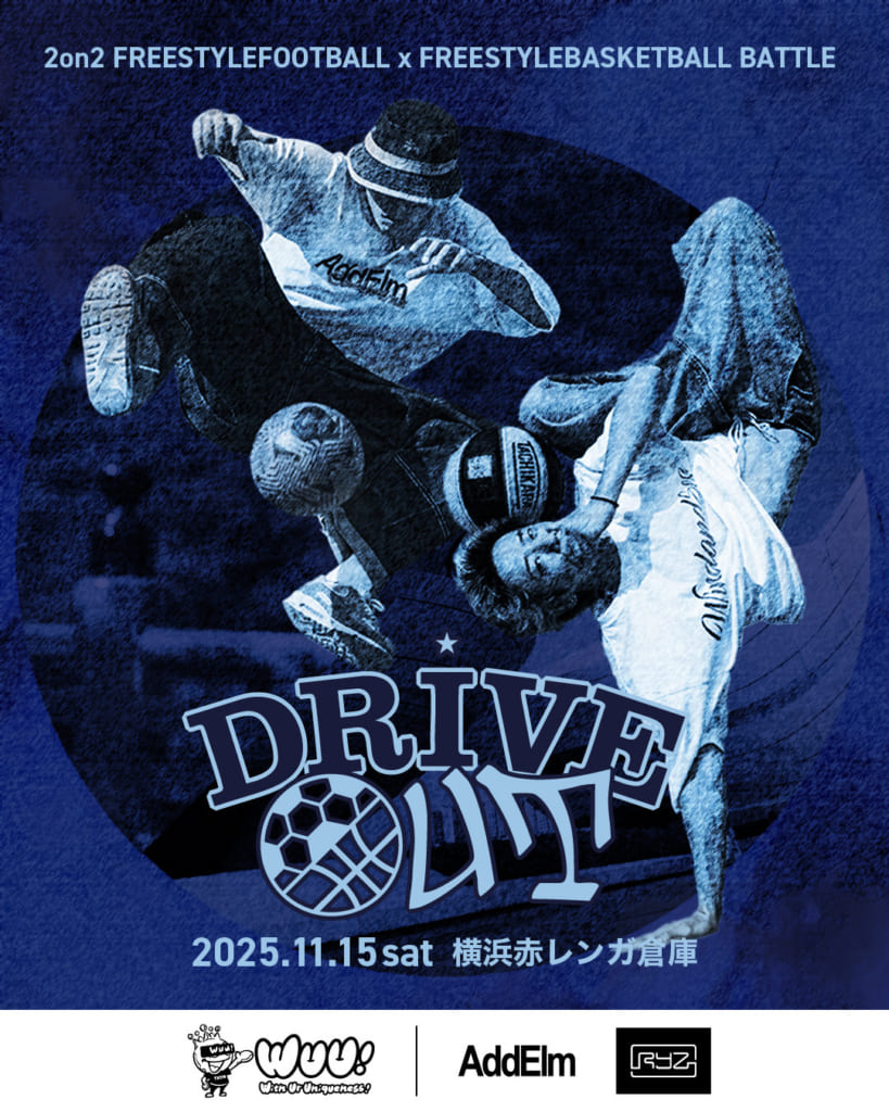 フリースタイルフットボールとフリースタイルバスケットボールの融合による2on2新大会「DRIVE OUT」が誕生。